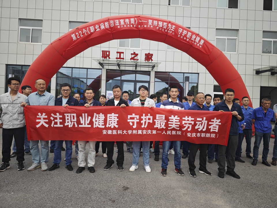 今年4月25日至5月1日是全国第22个《职业病防治法》宣传周,主题为“坚持预防为主,守护职业健康”。为进一步推动落实用人单位职业病防治主体责任,提升劳动者职业健康素养水平,近日,安徽医科大学附属安庆第一人民医院作为安庆市职业病防治院,参加了由安庆市卫健委、安庆市卫生监督处、安庆市民政局等联合举办的全国第22个《职业病防治法》宣传周活动启动仪式,并与安庆市卫健委、安庆市疾控中心、迎江区卫健委等多部门联合开展系列宣传活动,大力宣传《职业病防治法》。