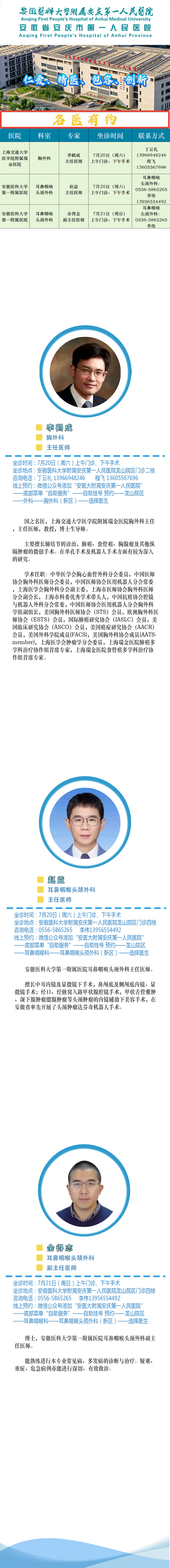 【名医有约】安医大附属安庆第一人民医院专家诊讯
