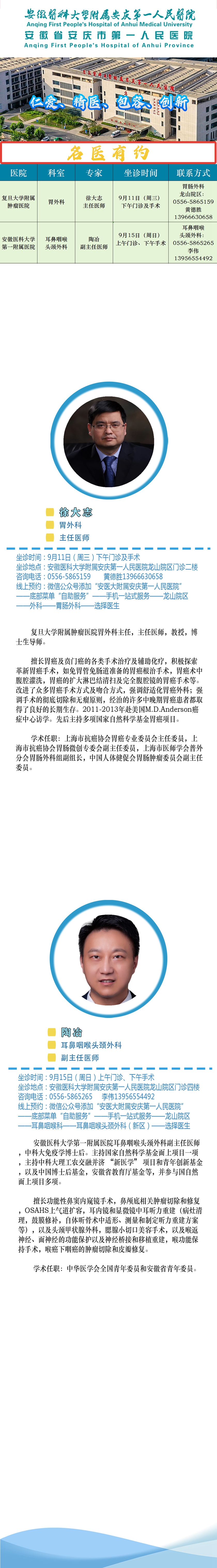 【名医有约】安医大附属安庆第一人民医院专家诊讯