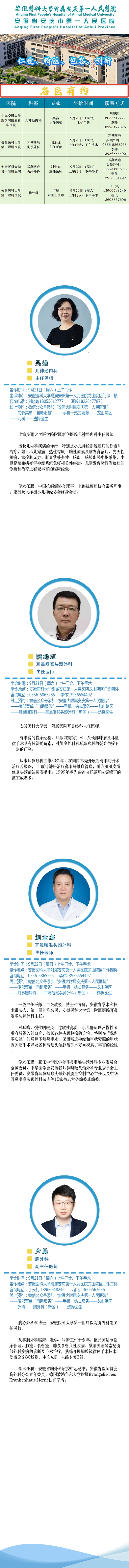 【名医有约】安医大附属安庆第一人民医院专家诊讯