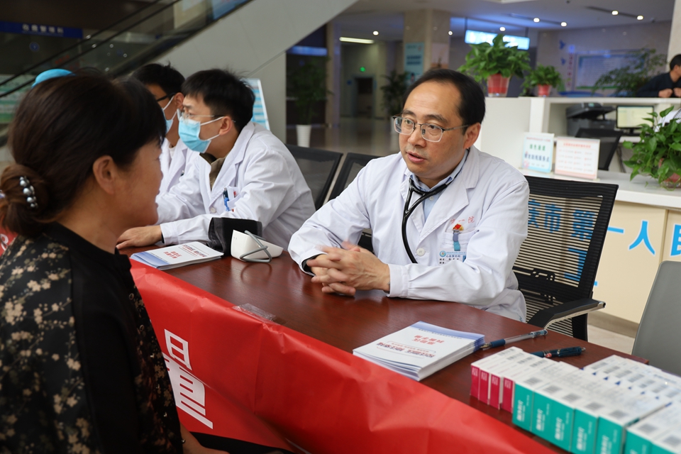 2024年10月8日是第27个全国高血压日。安医大附属安庆第一人民医院心血管内科彭杰成主任带领医护团队在龙山院区门诊一楼大厅开展了以“健康体重,理想血压”为主题的宣传义诊活动。