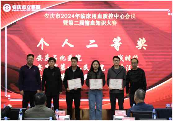10月20日,在安庆市临床用血质控中心组织举办的安庆市第二届输血知识大赛中,安医大附属安庆第一人民医院输血科代表队取得了团体与个人二等奖的成绩。