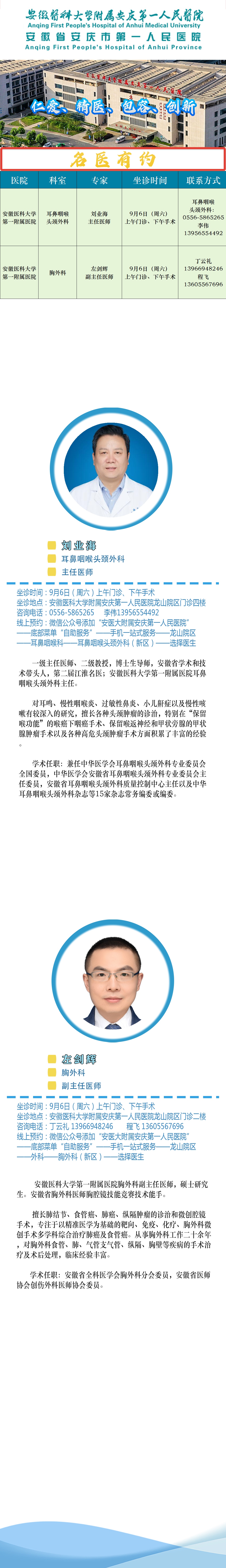 【名医有约】安医大附属安庆第一人民医院专家诊讯