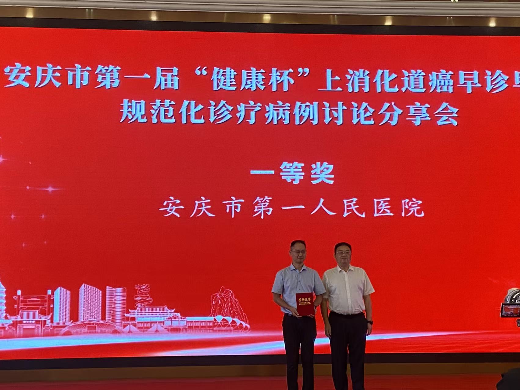 前不久,在由中国癌症基金会、癌症早诊早治项目(农村)专家委员会、安庆市卫生健康委员会联合举办的 2025年度消化道癌规范化、专业化、标准化、结构化(四化)培训班(安庆站)暨安庆市第一届“健康杯”上消化道癌早诊早治规范化诊疗病例比赛中,安医大附属安庆第一人民医院消化内科与病理科密切协作,取得内镜病例大赛一等奖的好成绩。