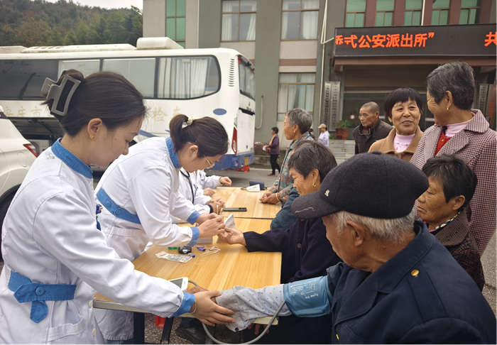 11月8日下午,安徽医科大学附属安庆第一人民医院心内科党支部书记彭杰成带领党员医护团队,赴鲍冲湖村、鹿山村开展“家+健康”主题党日医疗惠民义诊慰问活动。