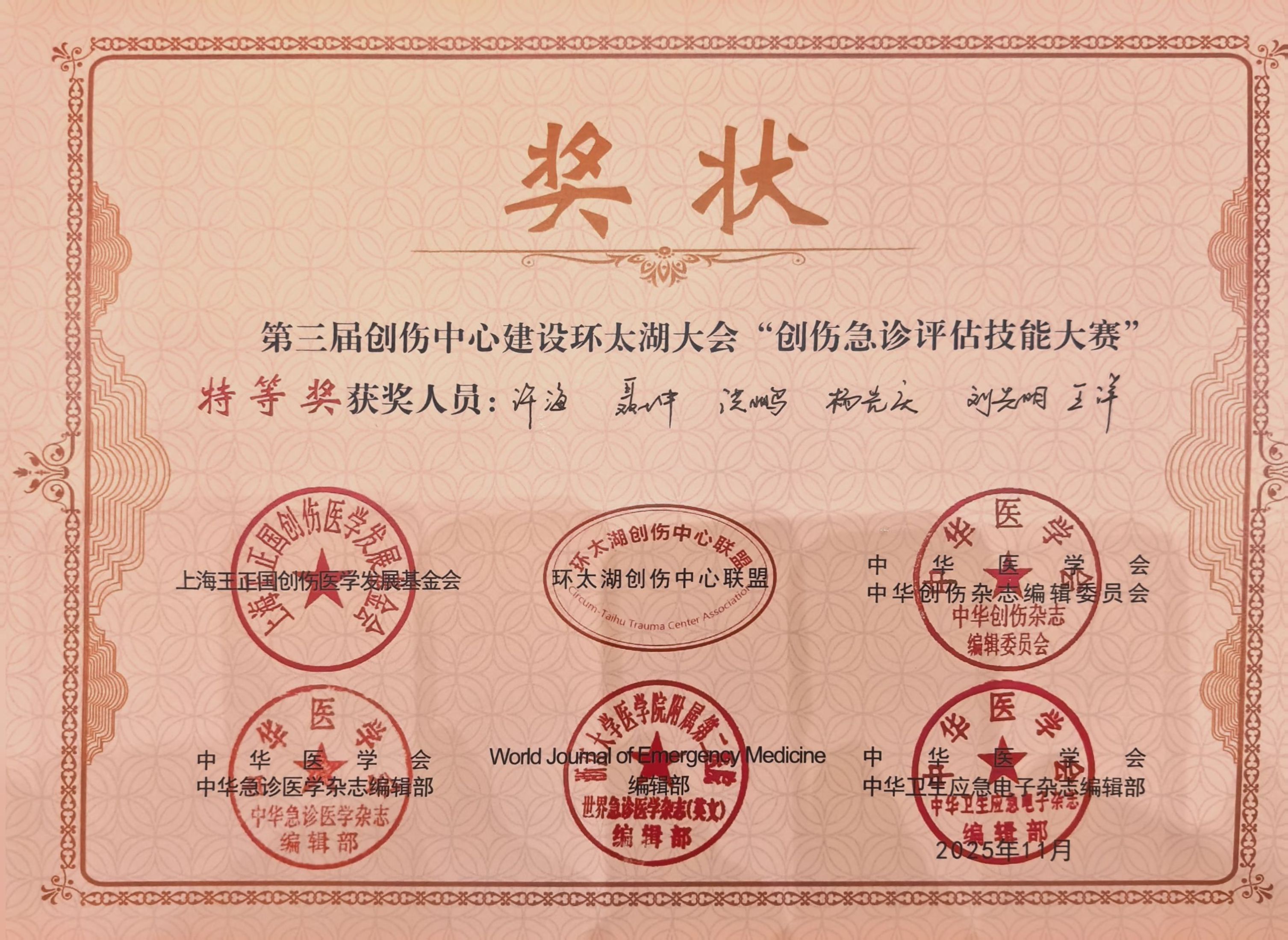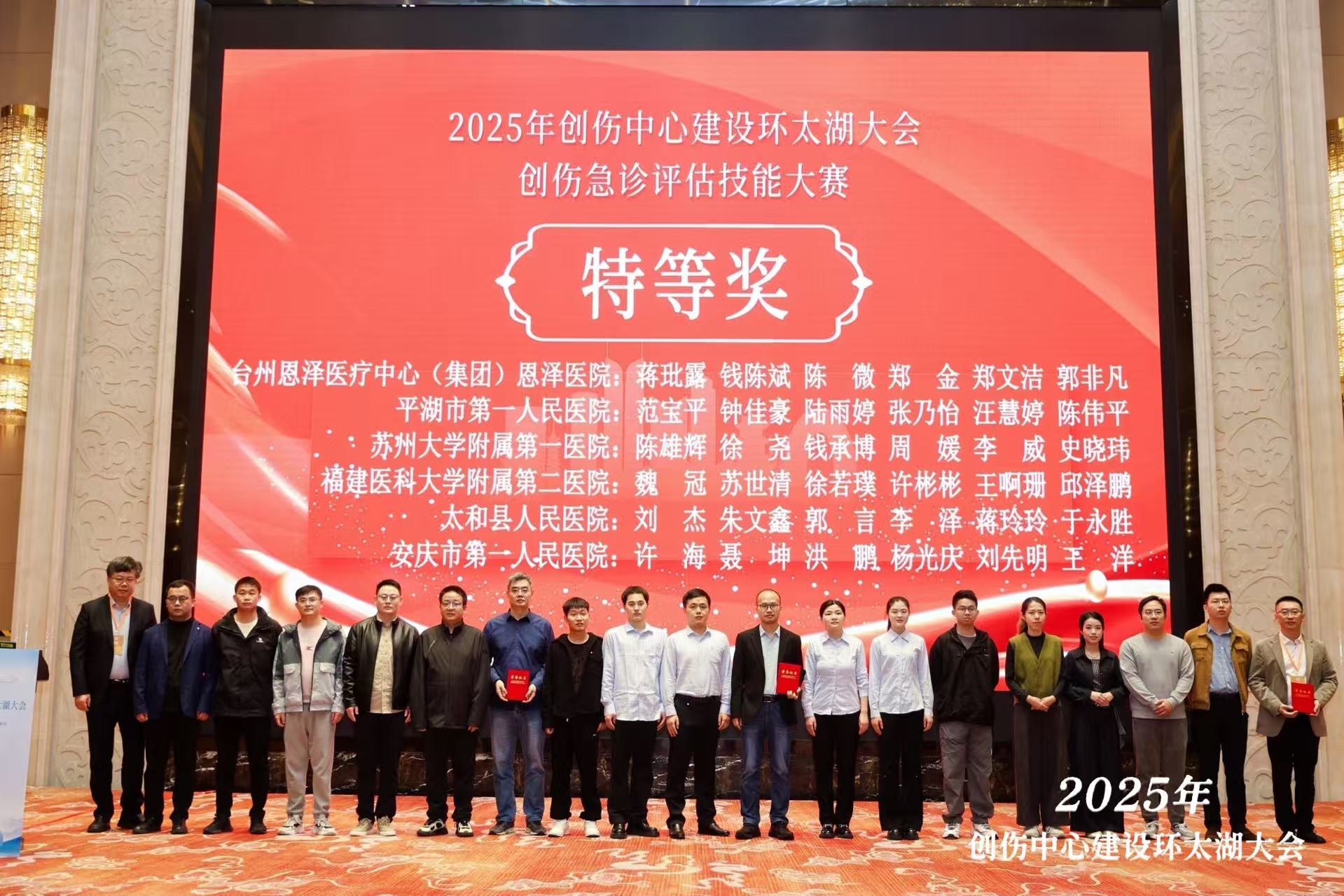 近日,在第三届创伤中心建设环太湖大会(浙江、安徽、江苏、福建)举行的创伤急诊评估技能大赛中,安徽医科大学附属安庆第一人民医院急诊科代表队凭借其卓越的综合实力,从四省精英团队中脱颖而出,勇夺大赛最高荣誉——特等奖。这一佳绩标志着该院创伤急救水平已稳居区域先进行列。