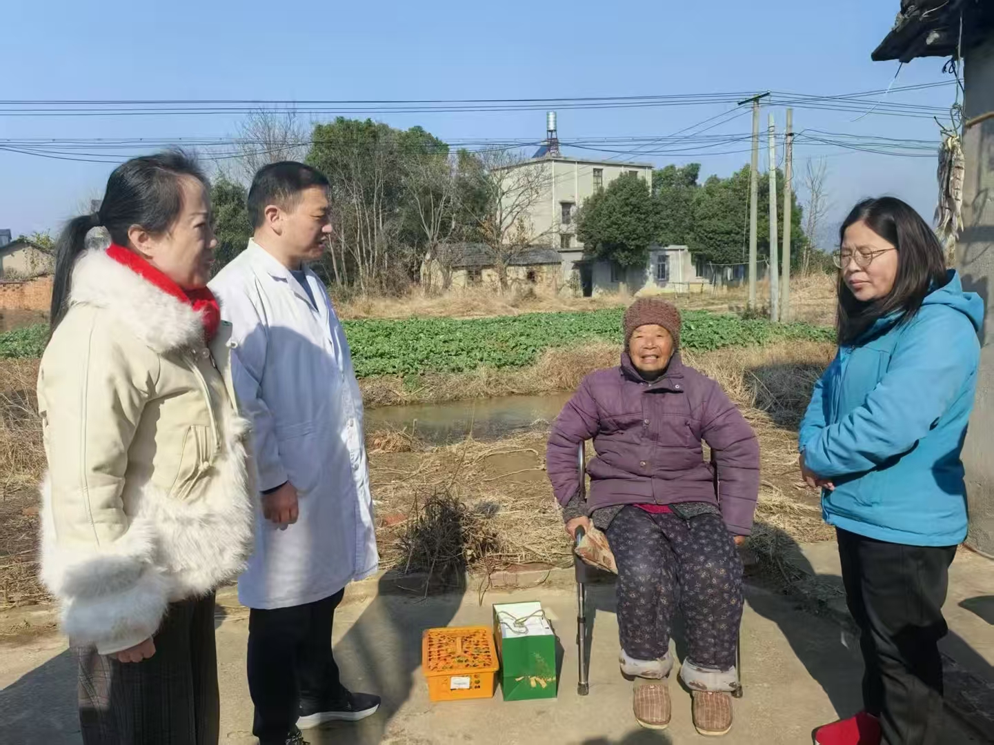 慰问过程中,还为每户家庭送上大米、牛奶、食用油等生活物资,切实传递组织温暖与医院关爱。“医生亲自上门看病、指导用药,还带来生活用品,真是把健康和服务送到了我们身边!”受访居民连连称赞。