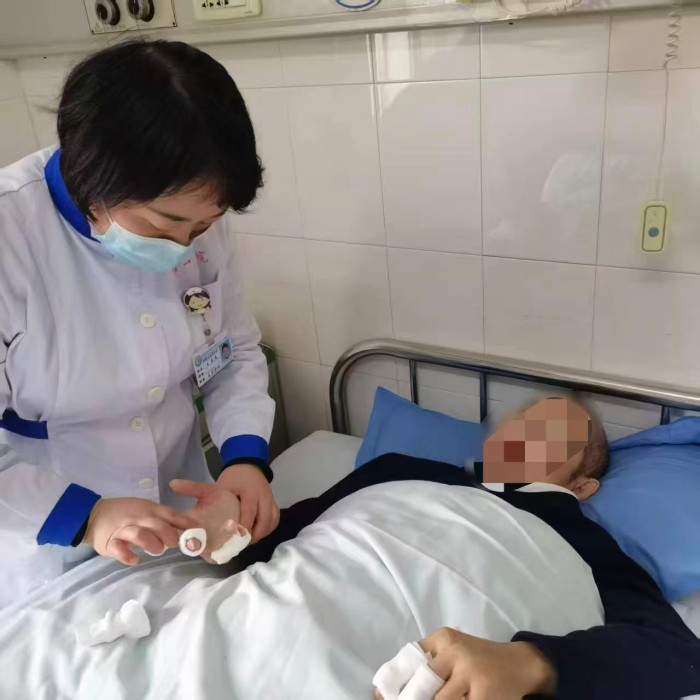 考虑到患者家庭困难且缺乏家属照料,护理团队主动承担了每日的皮肤护理工作。为减轻患者不适,她们穿刺时优先选择左手,湿敷前会细心地将生理盐水加温至接近体温;营养科根据其肝硬化基础病,量身定制了高蛋白营养食谱。查房时,医生总是耐心倾听诉求,详细解读病情,鼓励并尊重患者参与到自身的诊疗决策中。正是这些细微处的温暖,驱散了患者内心的恐惧与无助,让艰难的求治之路充满了被尊重的力量。